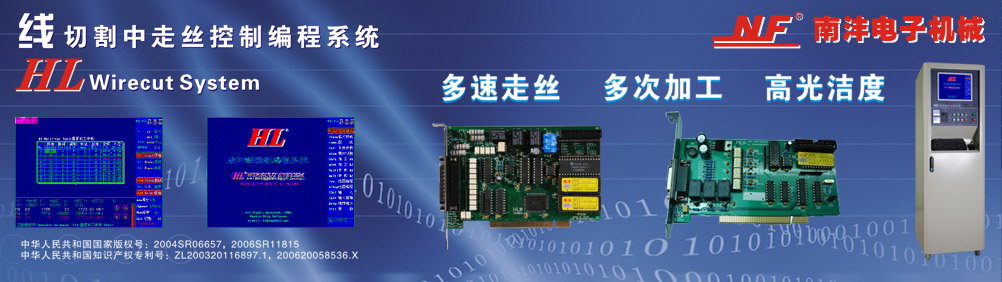 Links广州市南沣电子机械有限公司销售线切割机床、钼丝,导论,乳化油,承接线切割机床改造。是一家集研发,生产加工、经销批发的有限责任公司,公司研发的HL线切割编控一体卡,拥有国家颁发的专利证书和知识版权证书,是一套简单,实用,高可靠的线切割控制系统。为我国往复快速走丝线切割机床控制从单板控制向电脑控制做出了贡献。